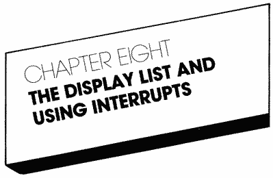 Used in the context of this book, an interrupt is a message telling the 6502 to stop whatever was about to happen in your ATARI and instead do something else defined by the programmer. When that task is finished, the 6502 may then continue with whatever it had planned prior to the interrupt. Two types of interrupts are normally used, both of which relate to the TV picture – display list interrupts and vertical blank interrupts. Neither of these can be used without machine language subroutines, since languages such as BASIC are far too slow for these purposes.