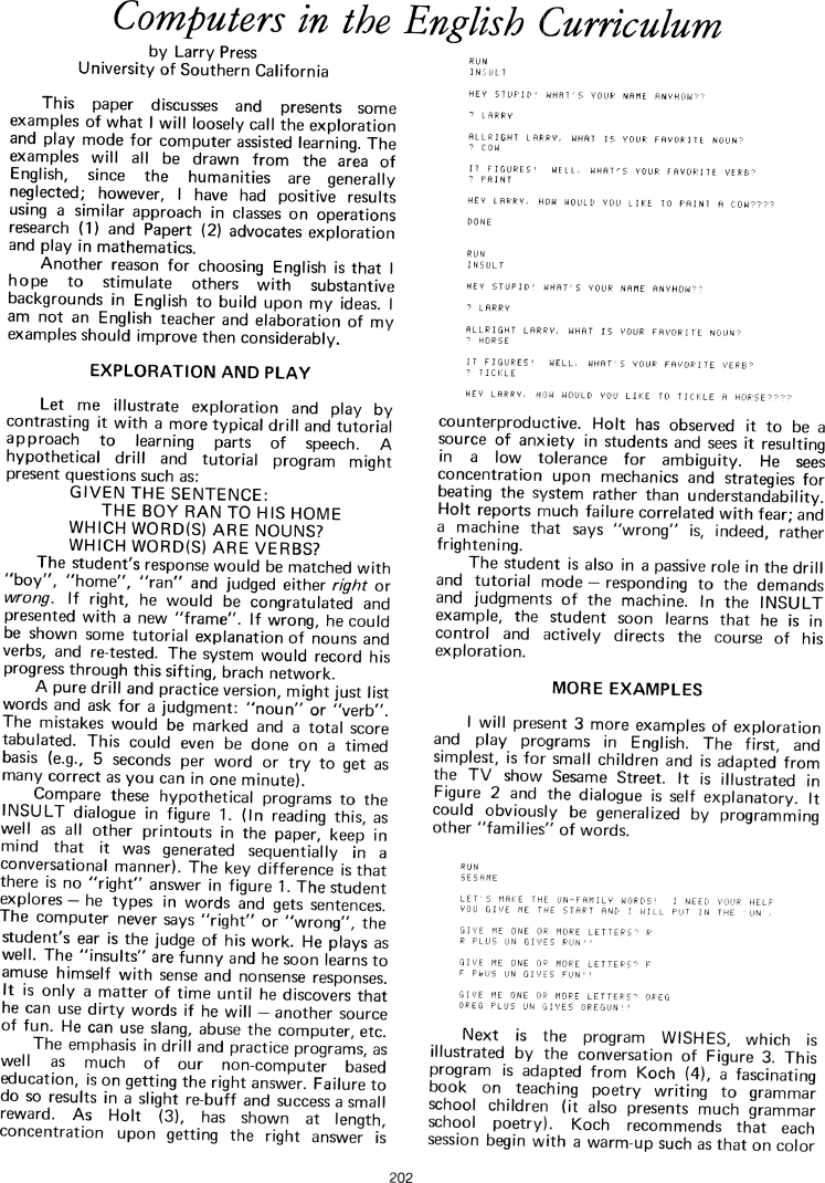 Computers in the English Curriculum (examples of exploration and play mode for computer assisted learning)