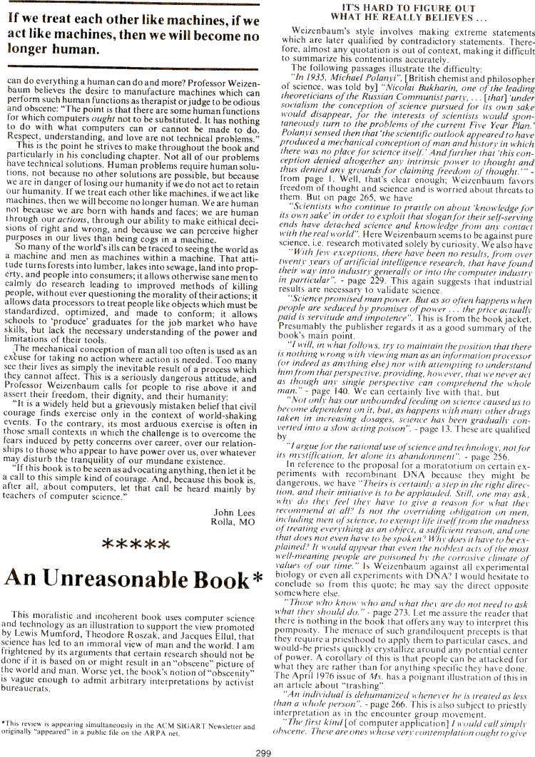Computer Power and Human Reason (review, continued)